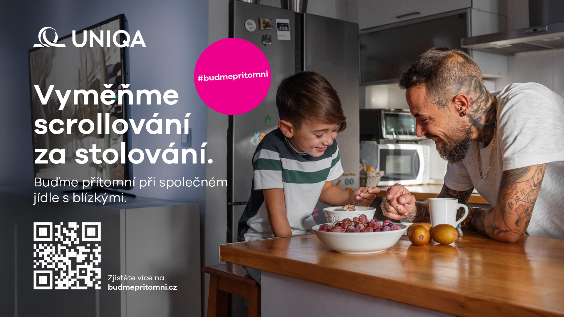 Až třetina rodin v Česku a na Slovensku spolu pravidelně nejí. Přitom právě společné stolování je podle velkého průzkumu UNIQA jedním z hlavních zdrojů rodinného pocitu bezpečí a pohody. UNIQA proto přichází s kampaní Buďme přítomní, aby podpořila vědomé trávení společného času u jídla. Kampaň navazuje na její dlouhodobou snahu posilovat duševní zdraví a ukazuje, že i malá změna – společný oběd či večeře – může přinést do života rodin nový rozměr. Průzkum UNIQA realizovaný renomovanou agenturou NMS potvrdil, že klíčovým ukazatelem pocitu bezpečí v rodině není majetek ani prostředí, ale kvalita vztahů. Rodiny, které si projevují lásku, tráví spolu čas a společně stolují, lépe zvládají stres, pečují o zdraví i majetek a jsou více připravené podpořit své starší členy.
